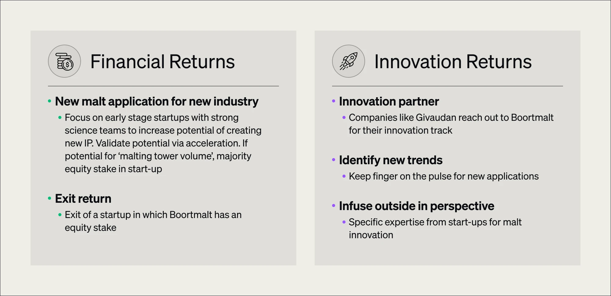 These activities are helping Boortmalt unlock new markets and create new revenue streams. While they also add value to the innovation pathway, the main focus is on financial returns.