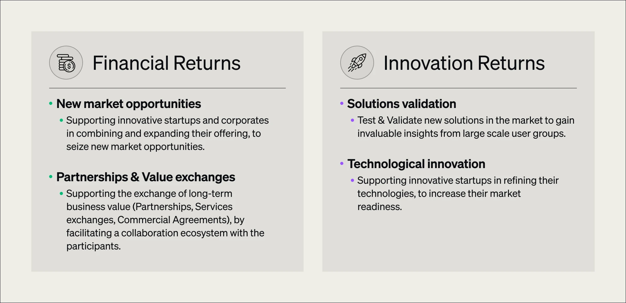 To identify the type of accelerator that will work best for you, it's important to assess what type of returns you’re most interested in—financial returns or innovation returns.