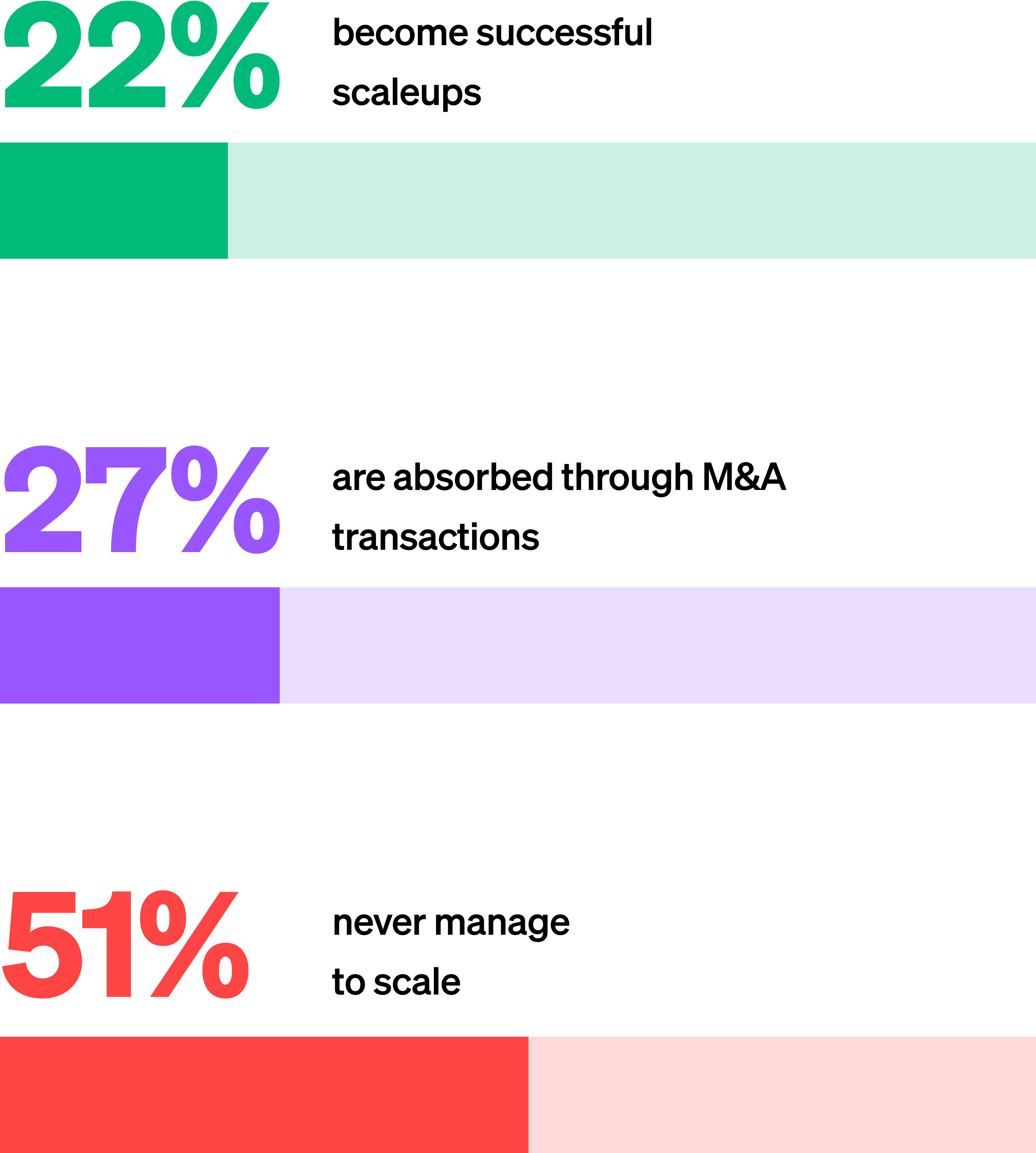 So why do so many ventures fail to scale successfully? Well, for one thing, scaleups require a whole different set of skills and mindset than startups. You’ll still be focused on your offering, but you’ll also be growing your team, automating processes, refining your strategy and discovering new ways to establish your competitive edge.
