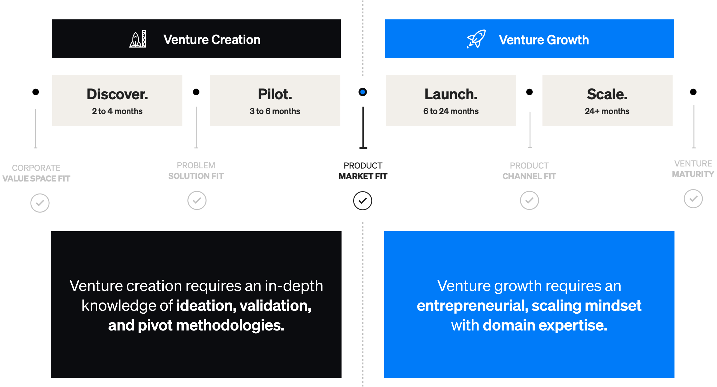 Having the right team in place is crucial to the success of any corporate venture, but it takes more than one individual venture team to go from concept to a sustainable-revenue generating business. Why? Well, because building ventures is an iterative, dynamic process that requires different skill sets at different points in its lifecycle.