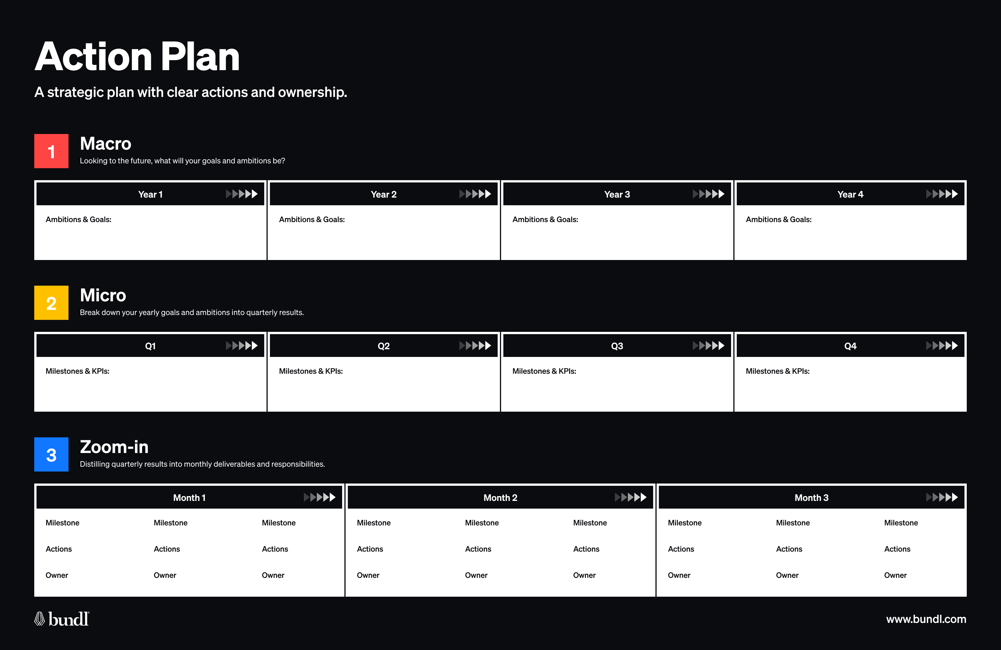 - Ownership of execution, e.g. who is responsible? What is the timeline? etc.