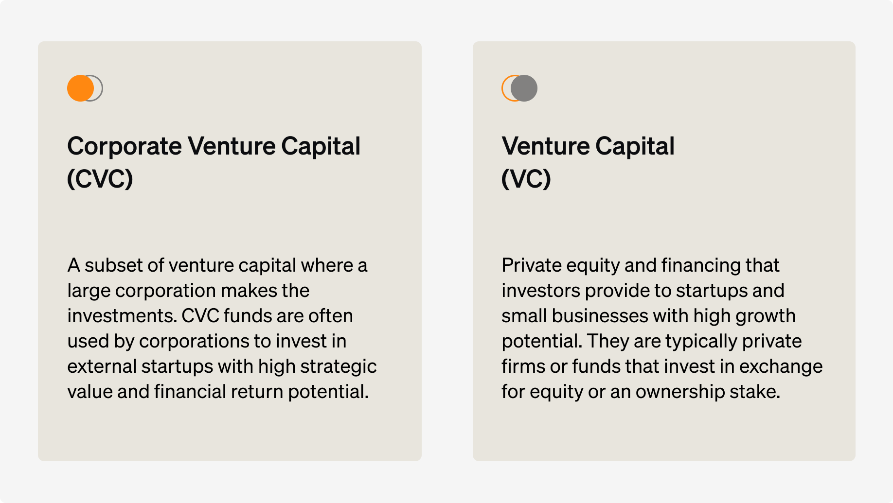 In other words, CVCs blend financial returns and strategic goals, serving as a dual-purpose instrument for corporate innovation. However, it’s important to note while the underlying goal is strategic and to avoid disruption in the long term, financial returns are a top priority.