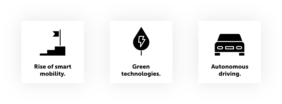 • 50% of today’s car owners will probably not be interested in owning a car by as early as 2025