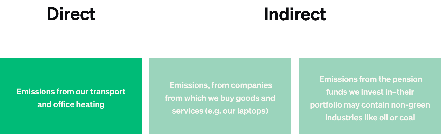 The first step we took in lowering our CO2 emissions was to examine their sources, which can be divided into three categories: