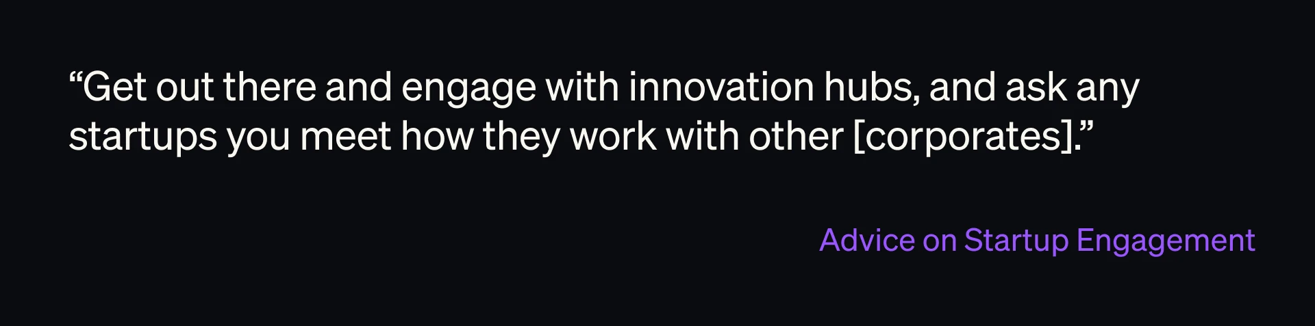 Start with the “when”, not the “how”. Introducing startups to your corporate vision early on can help gain their attention. Once you have that, you can dive into the details of the potential partnership.