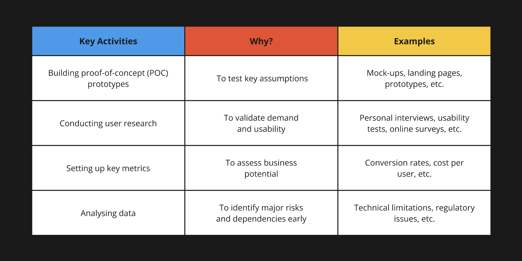 In short, validation sprints enable teams to identify potential bottlenecks, issues or failures by gathering insights from real users or stakeholders to guide the process moving forward (e.g. build, pivot or kill). This could save a significant amount of valuable time and resources, ensuring a lean and efficient product validation process.