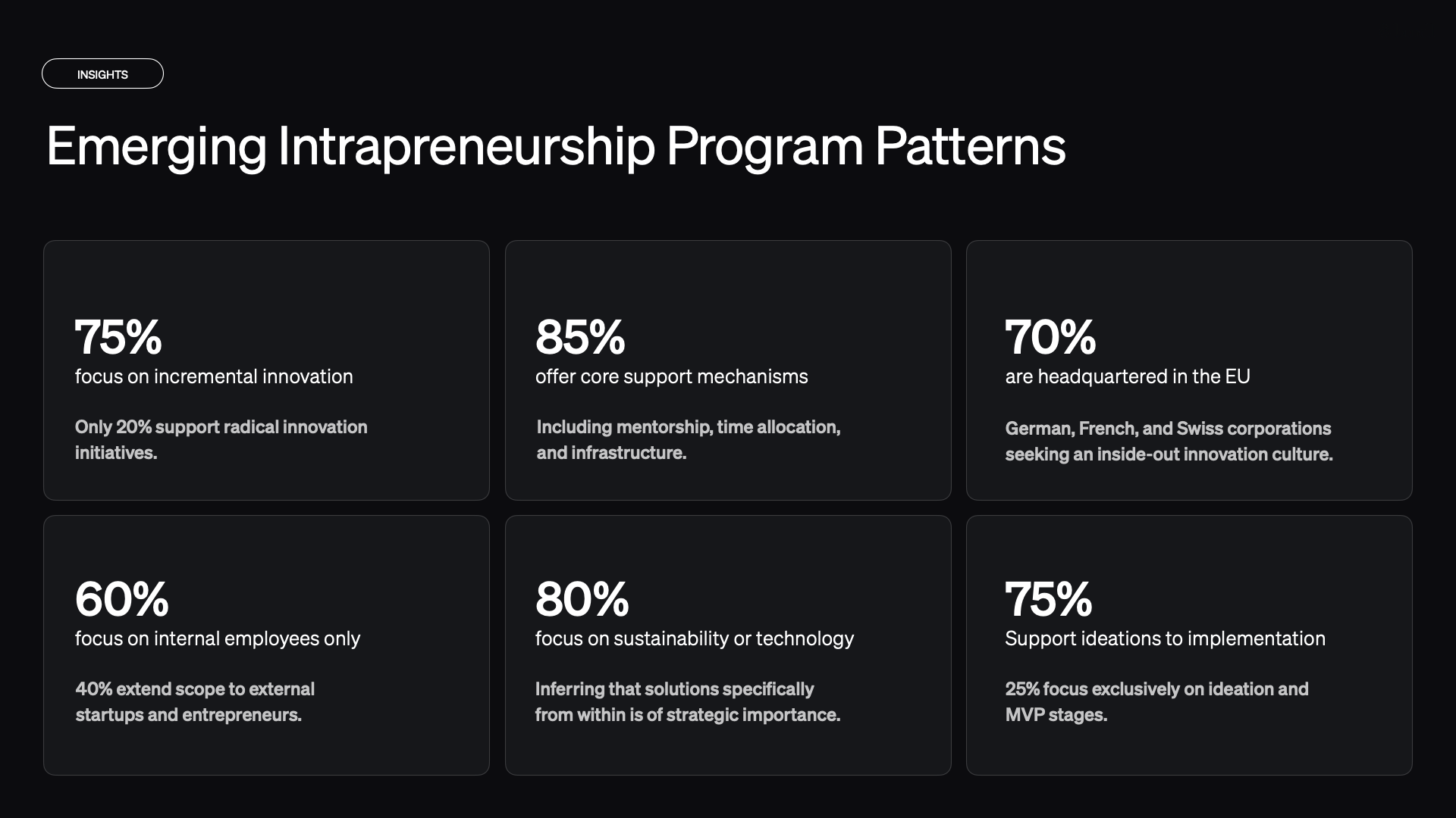Real-world examples of how top corporations are leveraging intrapreneurship to unlock growth, foster innovation, and build resilience. Gain insights into how companies create environments that empower employees to pursue bold ideas and generate measurable impact.