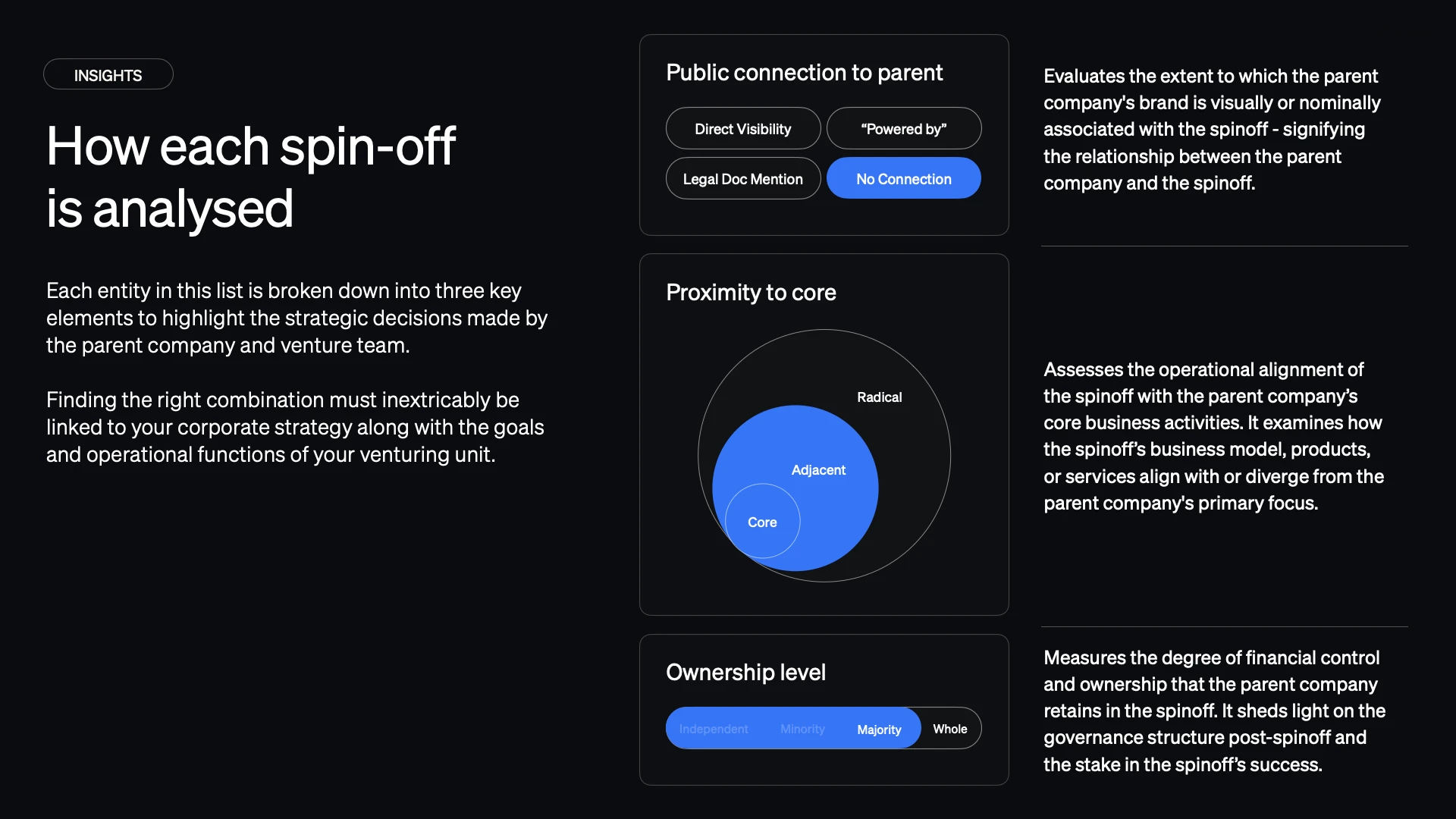Inspire your venturing efforts with real-world examples of successful, consumer-driven corporate spin-offs from across the globe. Learn how industry leaders utilise various structural combinations to create win-win scenarios for both parties.